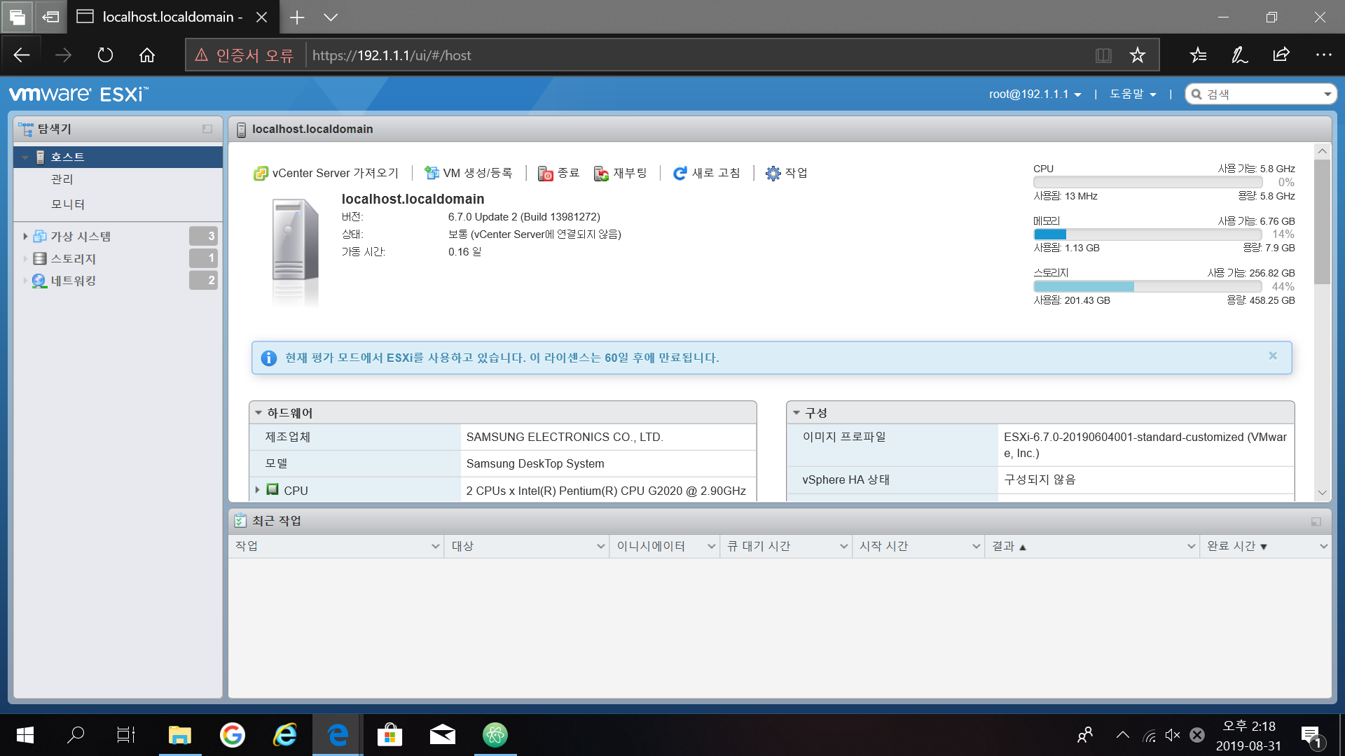 VMware ESXi 6.7.0 설치하려 했으나.. LAN카드 드라이버 문제로인해 잠시 고난을 겪었었다.