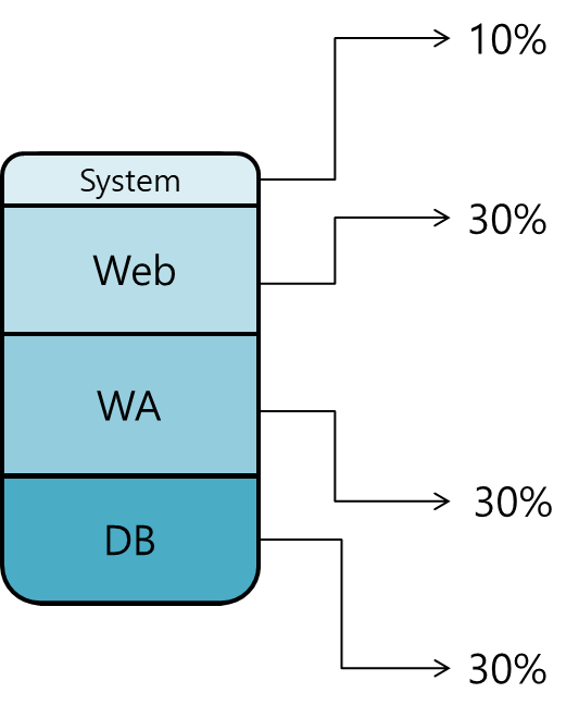 이런 식으로 사용하다보니 나머지 70% 시스템 관리용으로 많이 잡아 10%를 줬다고 해도 약 60%가 남는 자원이 되버린다.