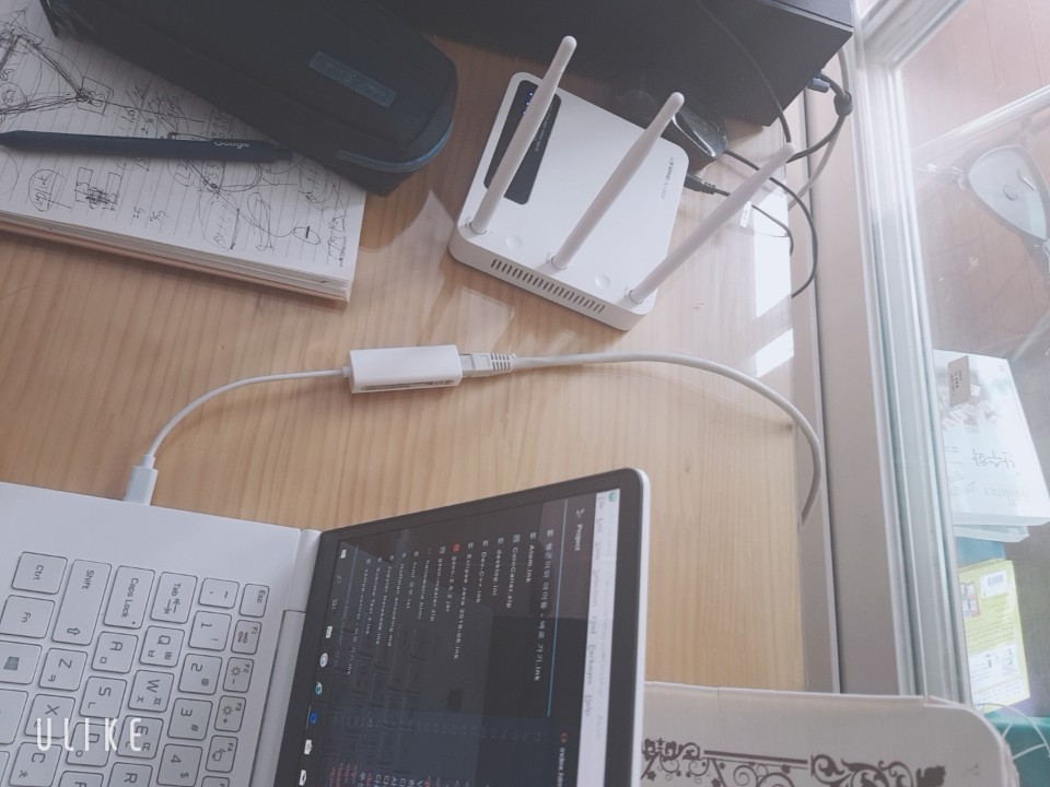 나는 LG그램을 쓰고 왼쪽에 보면 2.0타입을 꽂을 수 있어서 이 타입을 지원하는 어뎁터를 구매해 오른쪽 사진과 같이 PC와 노트북을 연결하였다.