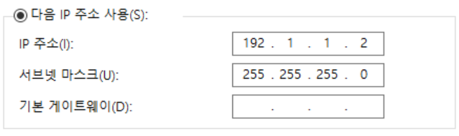 내 IP는 192.1.1.2 / 24, VMware는 192.1.1.1 / 24 로 설정하게 되었다.(여기서 / 24는 서브넷 마스크를 의미한다.)