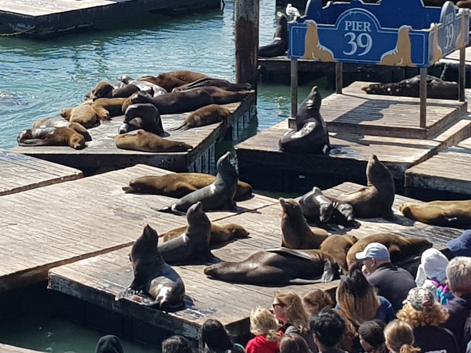 처음에 온 곳은 Pier39이라는 항구였습니다. 항구라 그런지 바다냄새, 여러 배들을 볼 수 있었고 특이하게도 바다 사자를 볼 수 있음이